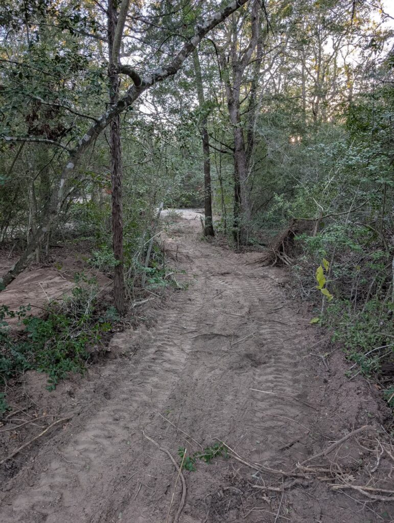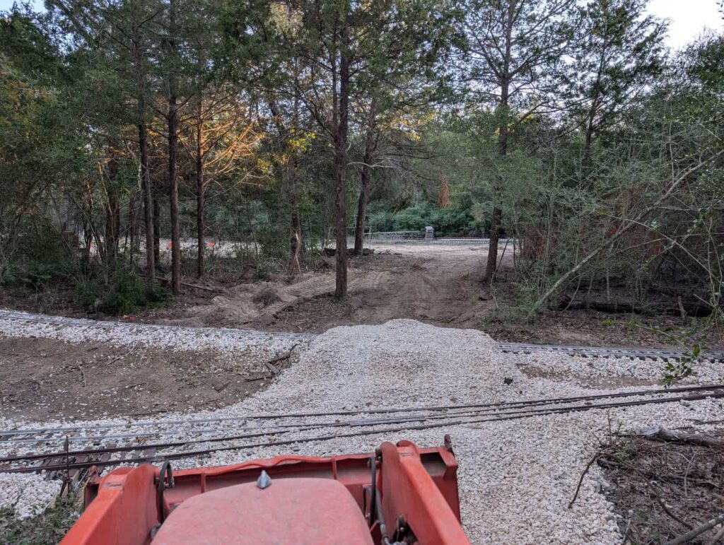 From the walkway’s grade crossing toward the site for the restrooms and the driveway where the transfer table will be located.