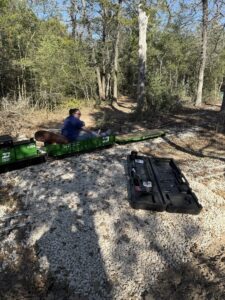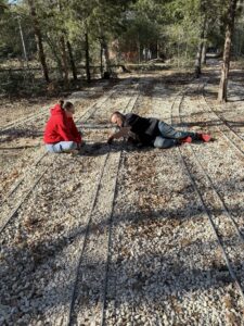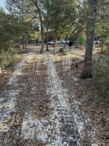 Out on the main line, Nick replaced ties around the entire Austin loop, with Abby and little Charlie closely supervising the operation. Once the job was done, Abby and Charlie put the new ties to the test by making several loops around the track, giving their official stamp of approval. With David on hand taking photos and everyone pitching in, it was one of those good, honest Texas workdays—plenty accomplished, plenty of laughs, and the railroad a little better than it was that morning.