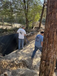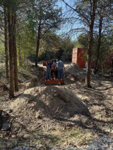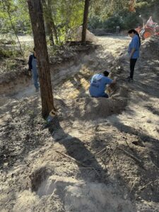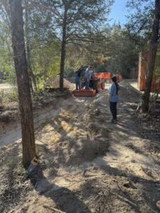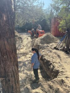 While the infrastructure work rolled on, Lori and Linda kept spirits high by putting together an awesome lunch that hit the spot for everyone. Ken, John T, Sophia, and Paul tackled the digging for the toilet tank hole, and Stephen later joined them to stack the blocks that will form the tank—solid teamwork from start to finish.